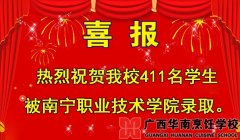 俯首耕耘有矢志,硕果飘香又一年。2015年全国成人高等教育考试成绩揭晓,我校411名考生被南宁职业技术学院录取! 在学校各级领导、社会各界和家长们的关心、支持、爱护下,在全体师生的共同努力下,在今年全国成人高