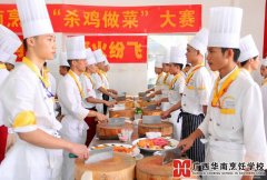 近日,广西华南烹饪学校大学路校区杀鸡做菜比赛在刀工大厅隆重举行,来自每个班的两位参赛代表手用他们的厨艺、创新给大家带来了一场别样的美食之旅。 广西华南烹饪学校大学路校区杀鸡做菜比赛 参赛选手 中国烹饪大