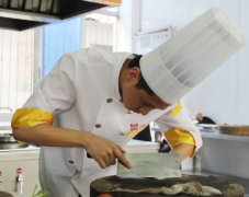 洁白的厨师服如群星闪耀,欢声与笑颜响彻楼宇,在实训大厅里面每个人脸上都显得轻松与惬意,他们都充满信心,相信自己能够做的最好。刀在手中挥舞,勺在掌中翻转,只见,原本粗糙常见的食材刹那间变成了让人赏心悦目