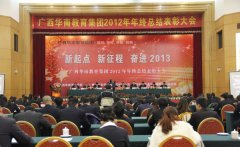 新起点 新征程 奋进2013 记广西华南教育集团 2012 年年终表彰总结大会胜利召开 2013 年 1 月 18 日上午 9 时,华南教育集团 2012 年度工作总结暨表彰大会于南宁市明园酒店大礼堂隆重举行。参加本次会议的有公司董事