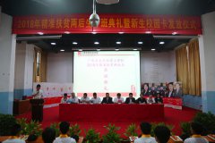 10月21日,我校在中尧校区大礼堂隆重举行2018年两后生开班仪式。我校教务主任黄盛等领导出席了会议。开班仪式上,黄主任表示,将通过本期的培训,使两后生们一技在手,终身不愁,帮助他们实现技能型就业、促进家庭稳