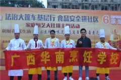 11月27日,由广西电视台综艺频道主办,广西华南烹饪学校协办的《法治大篷车基层行 食品安全进社区》活动在南宁市的广西重工生活区举办, 本次活动是为进一步加强社区居民的食品安全意识,大力宣传有关食品安全方面的